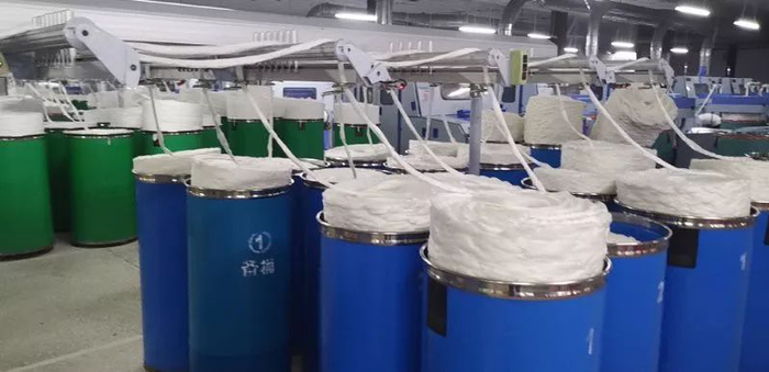然后将罗布麻的粘纤,和棉纱线一起,混纺成面料。