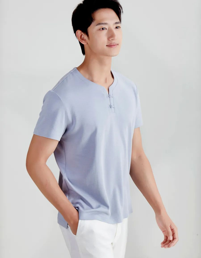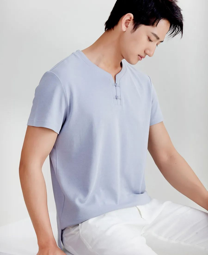 这一款是专门为男士设计的新中式上衣,版型利落。