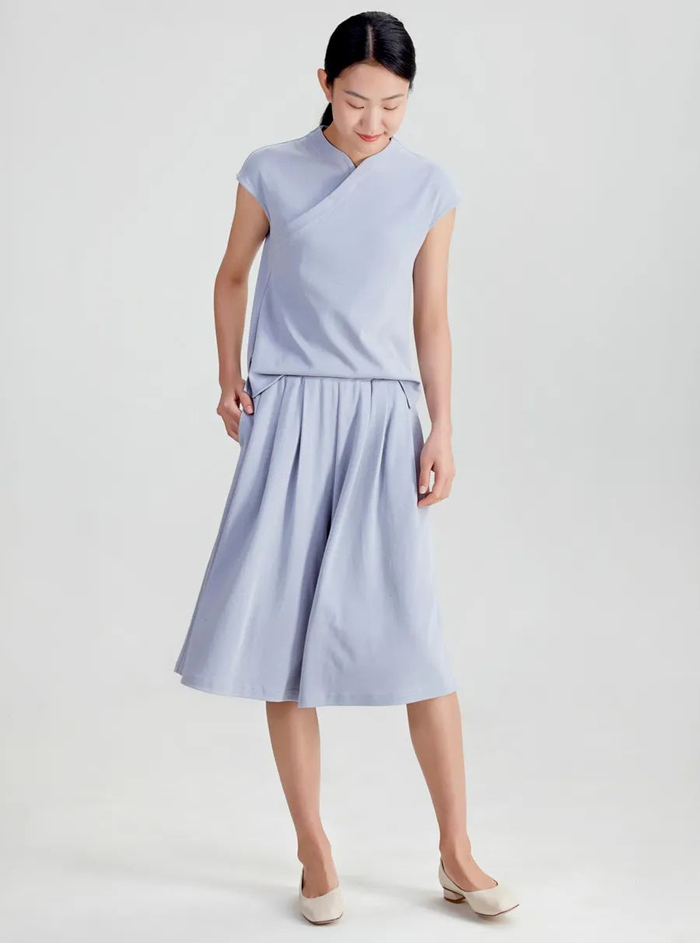 夏天穿裙子是既凉快又方便的选择,因此中偌也设计了一款很百搭的连衣裙。