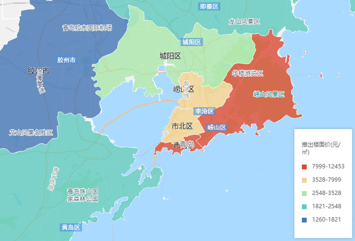成交地块分布相对集中,其中市北、李沧、崂山区成交地块大部分集中在三区交界区域,城阳、即墨区在驯虎山附近也有多宗地块成交,除此之外即墨区大多数地块位于蓝谷和即墨西站周边。黄岛区成交地块最多,主要集中在灵山湾、藏马山区域。