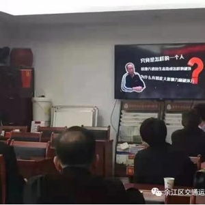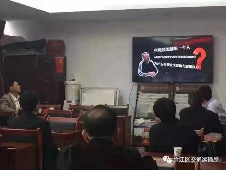 (图说:鹰潭余江区交通运输局组织全局党员干部职工集中观看《朱英福案件警示教育片》)