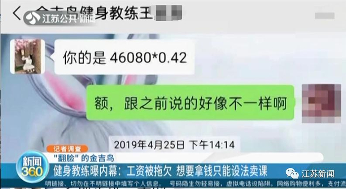 原标题:健身教练曝光金吉鸟内幕:工资被拖欠,想要拿钱只能…… 来源:江苏新闻