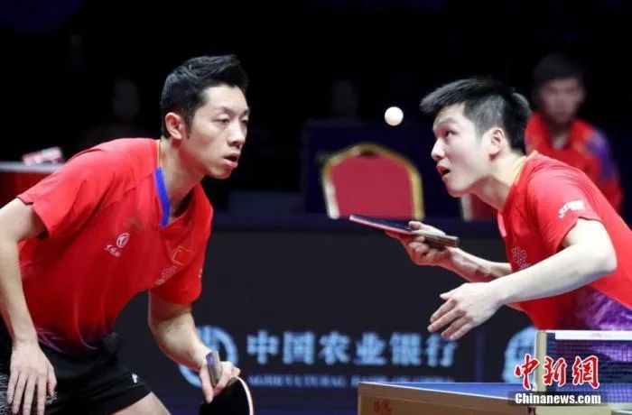 樊振东(右)/许昕在比赛中。资料图