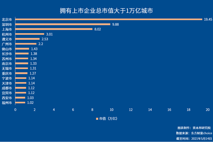 共18个城市上市公司总市值超1万亿