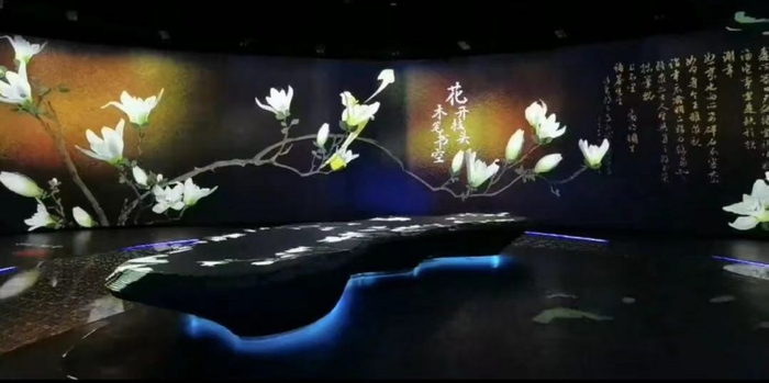 《锦绣》展区应用数字投影技术多维度展示祖国花卉之美,以长江从唐古拉山发源至东流入海为主线,结合中国古代名家名诗名作,介绍长江流域各地区的特色花卉,重点呈现由于季节原因,在花博会现场看不到的花种以及生活中难得一见的珍稀花种。