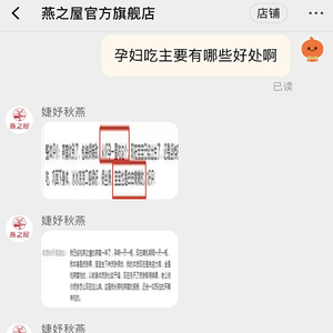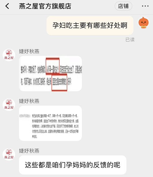 淘宝“燕之屋创远专卖店”工作人员告诉记者,“孕期滋补的话,妈妈营养更充足,宝宝发育更好。”记者追问吃燕之屋的燕窝产品对宝宝发育的好处具体有哪些时,对方并未给予明确答复,仅称,孕期宝宝的发育主要来自妈妈孕期的营养摄入。