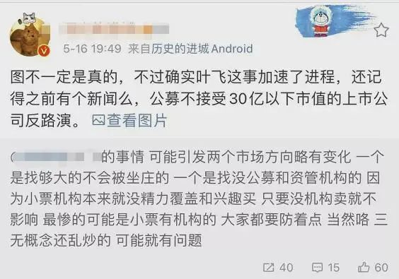 还有大V表示,叶飞加速了进程。以后建仓50亿市值以下的公司要谨慎了。