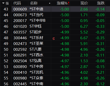 今日A股开盘,虽然“叶飞概念股”暴跌,但盘面上受到影响最为集中的目前看来还是市场上的ST板块。