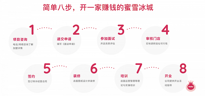 加盟蜜雪冰城的门槛其实不算低,品牌会对加盟商进行面试、审核等层层筛选。主要条件除了要认同公司的企业文化、经营理念,遵守公司经营规范外,加盟商还需要亲自参与门店运营(每个月在店时间不低于90个小时),并积极参加公司组织的培训管理等学习,预投资金额在30万元以上。不过如果达到了这些条件,据蜜雪冰城加盟客服称,最快半个月就能开店。