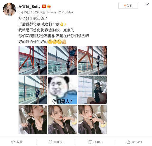 这便是吴宣仪遇到的困境。作为公众人物,就要时刻保持带妆状态吗?脸上的妆,连泡澡时都不可松懈吗?