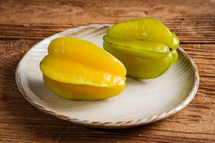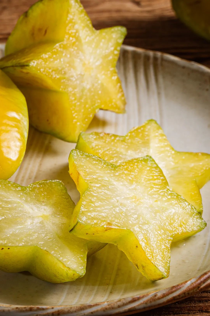 切成星星状后,一口咬下哦,汁水瞬间在口腔中充盈,外皮脆嫩弹牙,里面的果肉又鲜甜爽口,根本吃不出一丝涩味。除了直接吃外,青色还未完全熟透的杨桃还能蘸辣椒盐或者酸梅粉吃。