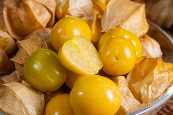 每一颗菇娘果外面都包着一层“牛皮纸”,剥开后,内里金灿灿、黄盈盈的,放进嘴里一嚼,汁水立马爆开,果香浓郁,再咀嚼几下,奶香味就浮上来了。