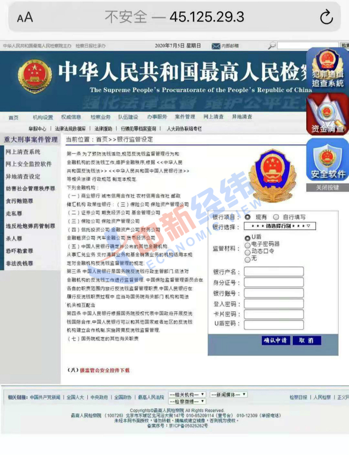 去了派出所后,警察检查我手机发现,电话早已被呼叫转移并拦截了短信,我打开的所谓“中国最高检”网站是一个钓鱼网站。最后,在银行打了流水才知道骗子盗刷走了汇入建行的全部资金并且盗刷了我的信用卡,共计31.53万元,现在这起案件还在调查中。