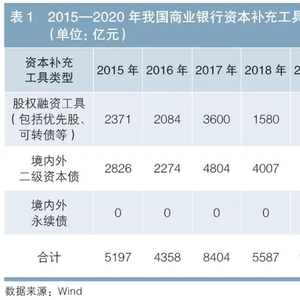 在境外市场,资本补充工具通常包括可转债、优先股、其他一级资本(additional tier 1,AT1)债、应急可转债(contingent convertible bond,通常称为CoCo债)和次级债(subordinated bond)等。与国内相比,境外资本补充工具的差别主要在于AT1债、CoCo债和次级债。其中,AT1债是用于补充其他一级资本的债务工具的总称。CoCo债是用于补充其他一级资本或二级资本的工具之一。在银行面临问题、达到触发条件(一般是资本充足率下降至某一水平)时,CoCo债停止付息,自动转成银行的普通股,补充银行的核心一级资本。在我国,宁波通商银行发行的转股型永续债与CoCo债类似。次级债是用于补充二级资本的债务工具的总称。