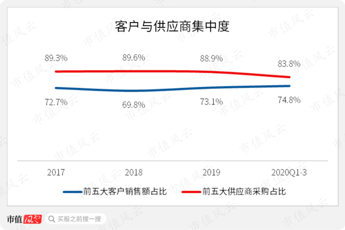较高比例的客户与供应商集中度,使得公司在产业链上下游话语权较弱,属易受“夹板气”体质。