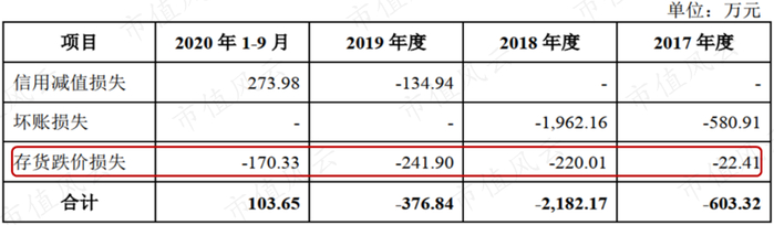 与此同时,公司的存货跌价损失也迅速增加。2017年公司的存货跌价损近为22万元,到了2019年末就飙升至242万元;2020年前三季度存货跌价损失为170万元。
