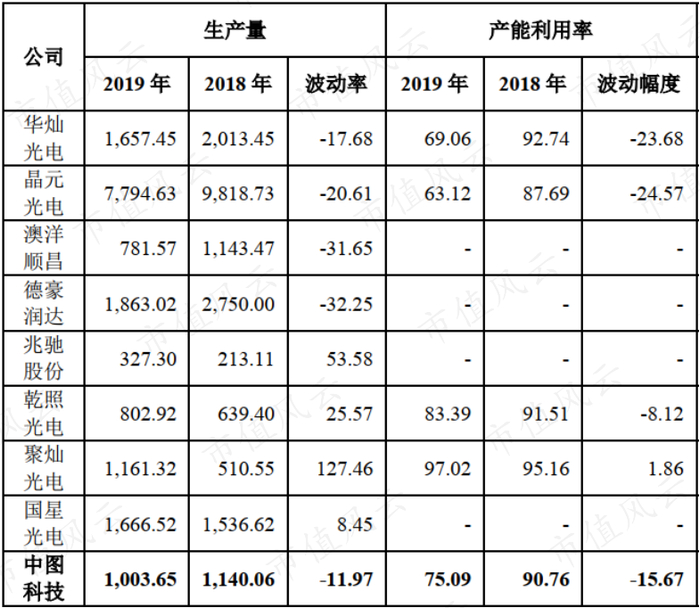 2019年下游外延及芯片厂商受需求不振影响,主要LED芯片企业的产量、产能利用率在去库存的背景下处于下降水平,公司PSS和MMS产量同比降低12%,产能利用率同比降低16个百分点,与下游企业的趋势基本一致。