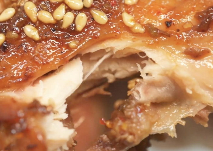 一整只鸡骨架出锅端上桌,客人们自己啃。 视觉中国 图