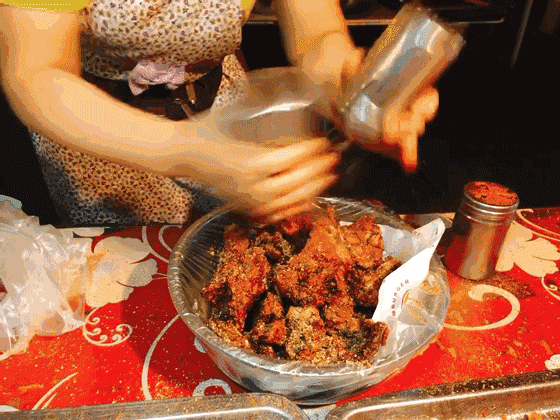 店家把鸡架烤熟了后,拿剪子给你剪开。如果是一个人吃,那建议你不用剪,因为拿手抱着啃才最香。那时候,放学在路边买一份,边啃边走回家,简直幸福得“要死”。