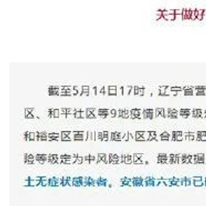 上述落款为“XX县应对新型冠状病毒感染肺炎疫情防控指挥部办公室”的通告原本写道,“截至5月14日17时,辽宁省营口市盖州市陈屯镇杨店村,鱿鱼圈区熊岳镇宜城社区、和平社区等9地疫情风险等级定为中风险地区。”