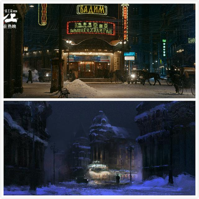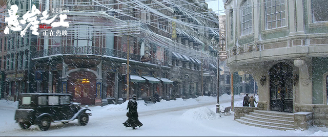 哈尔滨中央大街的地标建筑目前还都保留着,美术组在设计阶段,提前去哈尔滨实地考察,搜集了当时大量的历史资料,也实地测量了中央大街的很多细节,包括街道的宽度、楼体之间的比例、路面与建筑的材质等,为还原中央大街做了一个基础准备,但并没有完全照搬,因为原貌相对更单调一点,就是一个横竖关系的街道,包括一些地标性的建筑都很分散,空间关系上形不成一个电影所需求的内容。