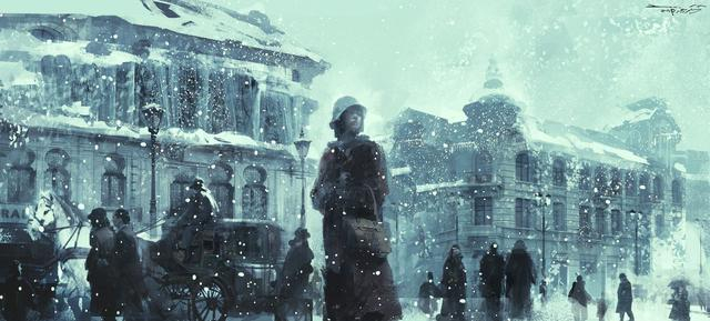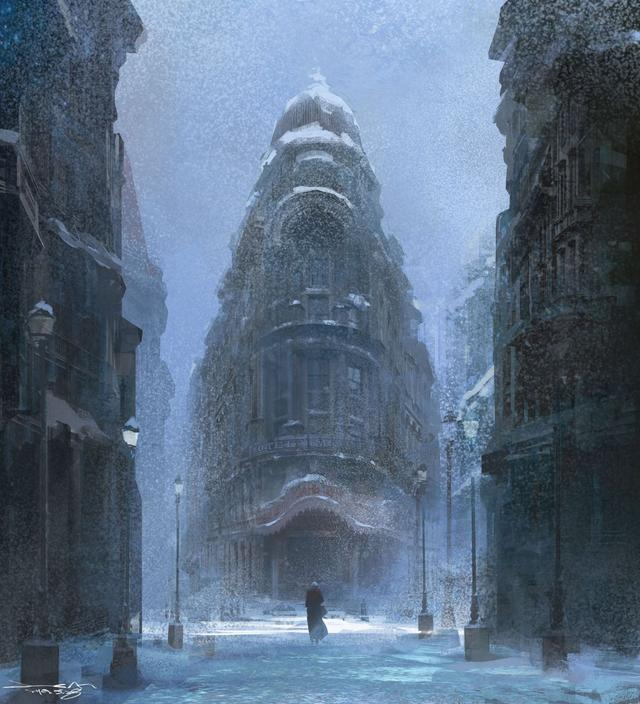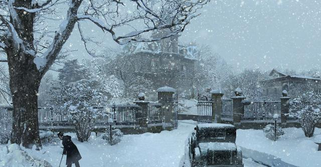 《悬崖之上》雪中洋楼概念图。