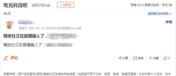 啥情况呢?这是。小编去股吧里看看,结果有了一些发现。很多股民表示被一个叫“精忠社”的给骗了。