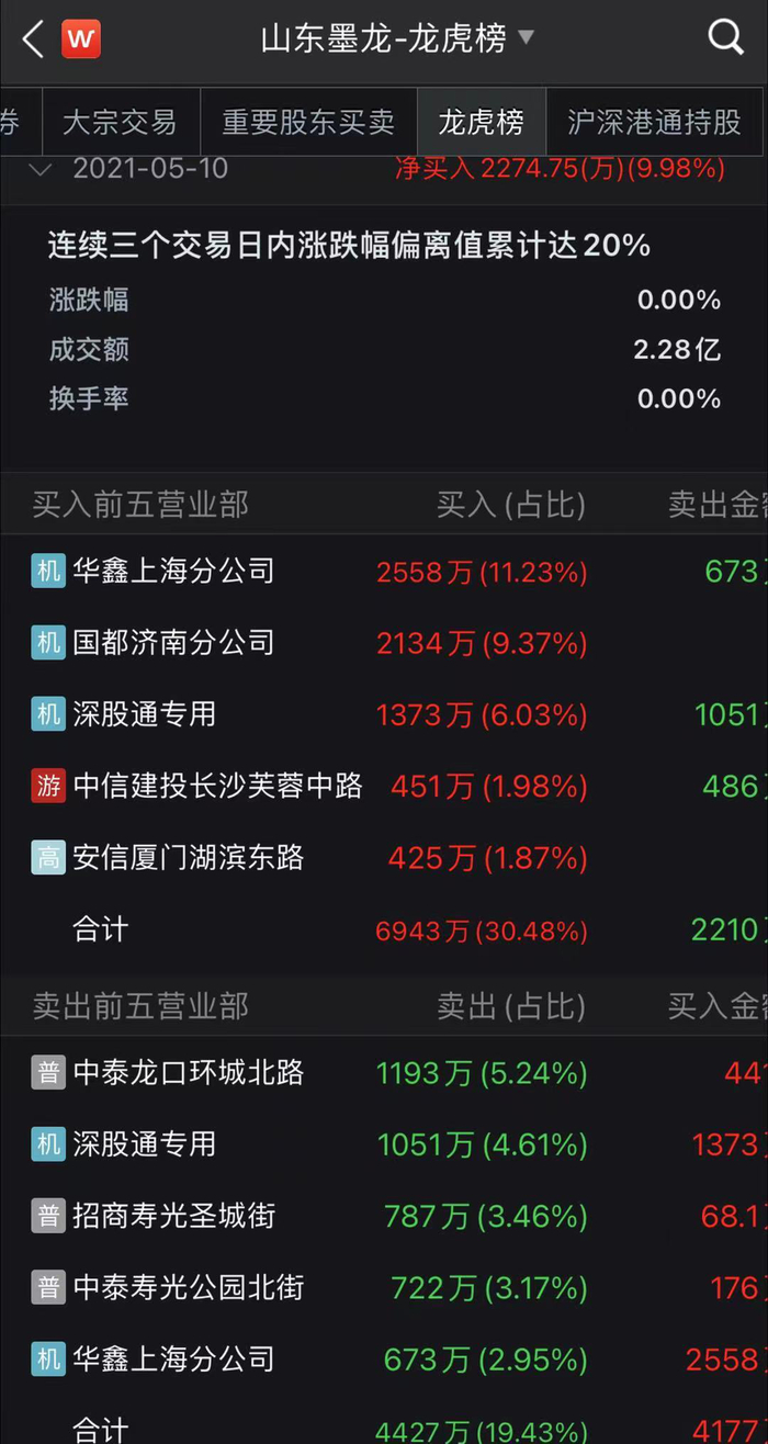 值得注意的是,最近披露的两次龙虎榜显示,机构和游资都参与了山东墨龙的买卖。