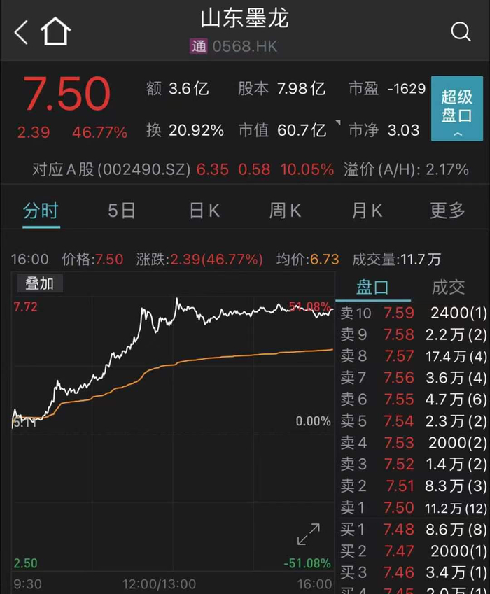 山东墨龙H股表现更是强势,当日大涨46.77%。