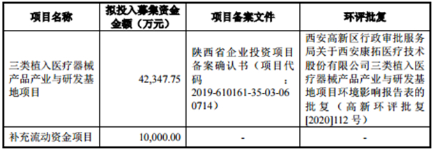 招股意向书显示,此次康拓医疗拟申请在科创板公开发行不超过1451.00万股,计划募集资金5.23亿元,其中,4.2亿元用于三类植入医疗器械产品产业与研发基地项目,1亿元用于补充流动资金。