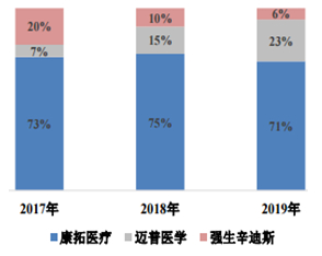 2017-2019年我国PEEK颅骨修补产品市场占有率(以出厂价计算)