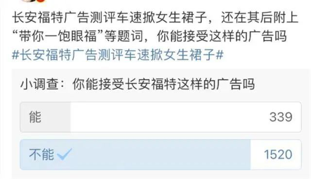 对此,有网友发起了“你能接受这样的广告吗”的小调查,其中1520人表示不能,有339人表示能够接受。
