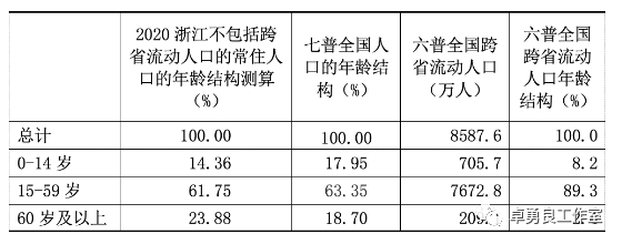 表明跨省流动人口的增量,已成为这10年浙江劳动年龄人口增量的主要部分。根据六普的全国数据,跨省流动人口90%是劳动年龄人口。