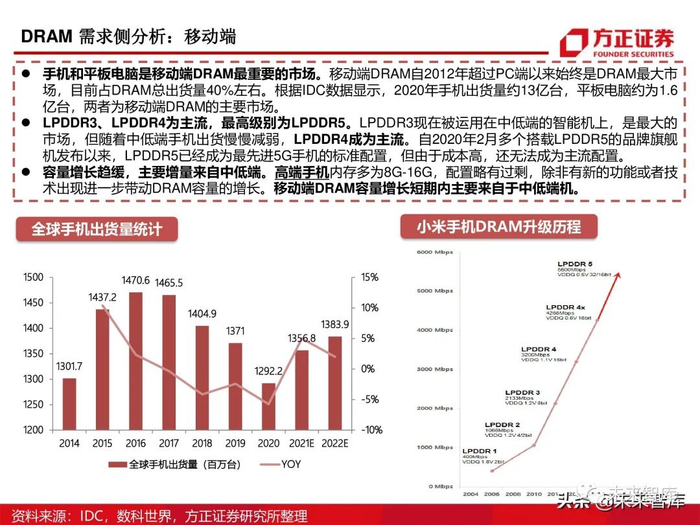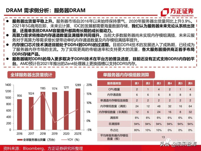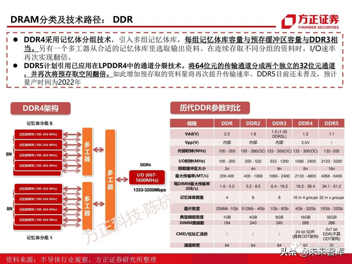 云计算、大数据的兴起,服务器的数据容量和处理速度在不断提高,推动了DDR技术的升级 迭代,目前市场上主流技术规范为DDR4和LPDDR4,DDR5技术即将进入商用领域。