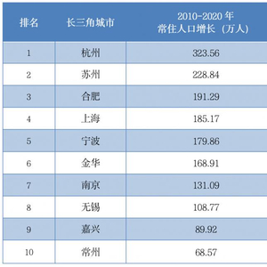 原标题:长三角十年人口增长:杭州苏州合肥排名前三,上海仅排第四,南京不敌合肥