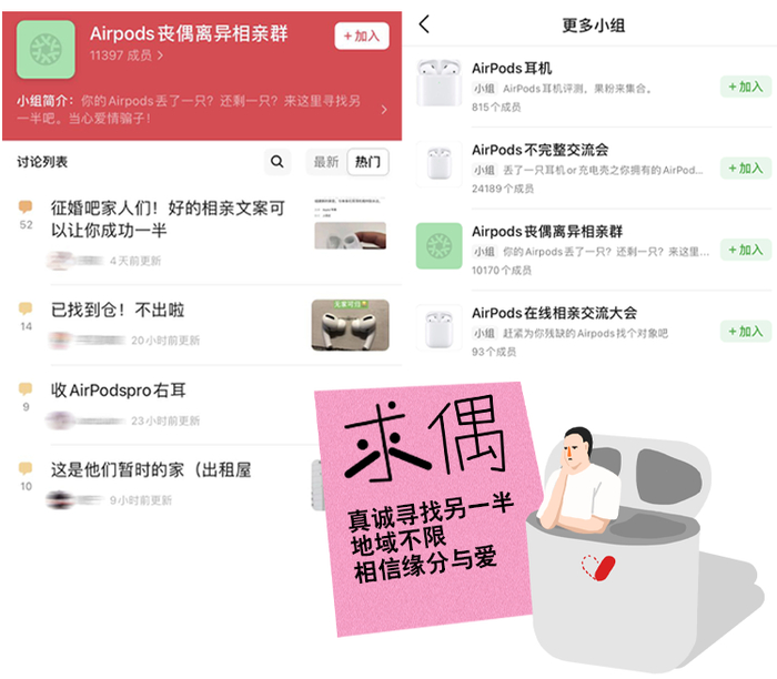 随着无线耳机的普及,比找对象更日常的,是为无线耳机找另一半。去年在二手交易平台上,有13万只缺失了另一半的无线耳机 “相亲”,其中 AirPods 占比超六成。