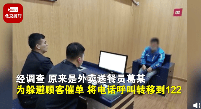 经查,原来是外卖送餐员葛某为躲避顾客催单,将电话呼叫转移到122。