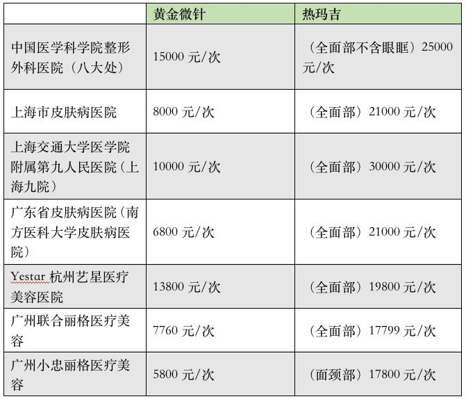 而热玛吉则相对简单,因为其治疗仪器单一,一般900发的价格在20000元以上,不同的医疗机构有不同的定价。据21新健康记者调查目前市场上主流医疗机构定价如下表。