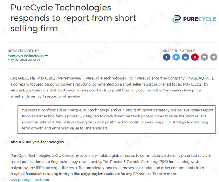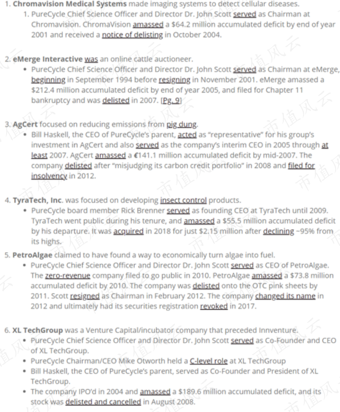 做空机构还称,PureCycle的高管团队同样是一群“经验丰富”的骗子团伙。