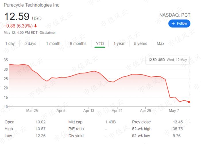 尽管PureCycle至今未实现商业化,但其上市后的市场估值一度高达31亿美元,企业价值约28亿美元。