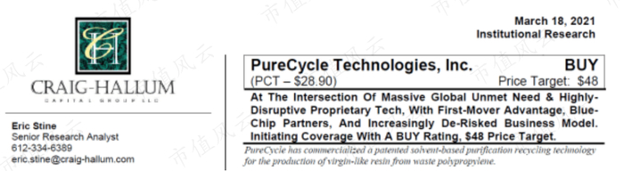 但SPAC交易并不需要遵守上述规则。于是,在PureCycle上市的当天,Craig Hallum 便发布了“买入”评级和48美元的目标价,PureCycle上市当天,股价上涨13%。