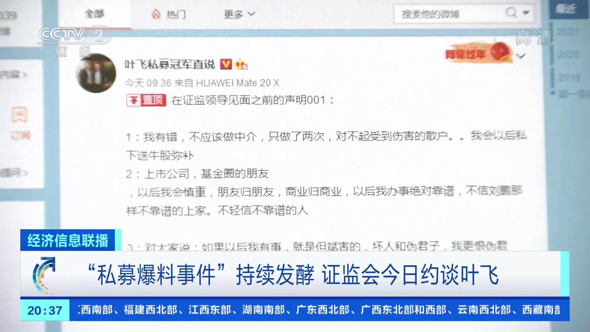 叶飞的爆料,引起了舆论发酵,同时也惊动了证监会。