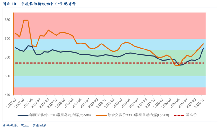 2)长协定价机制的影响。根据年度长协的定价公式50%*基准价+50%*三大煤炭指数/3,煤炭价格的上涨只有50%会反映到合同交易价格中。