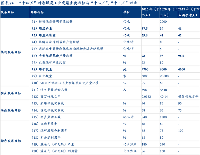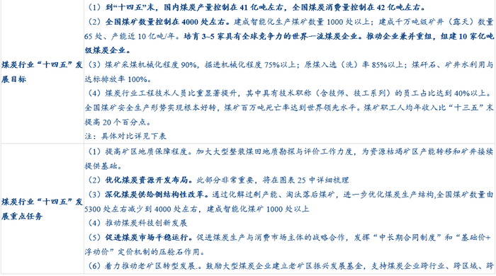 《煤炭工业发展“十三五”规划》:在由煤炭行业产能过剩导致大量煤企亏损后,我国于2016年12月正式发布《煤炭工业发展“十三五”规划》,“十三五”规划以转型变革为新的起点,突出了行业的结构优化升级和行业改革等主要任务。《规划》中指出,要以供给侧结构性改革为主线,坚持市场在资源配置中的决定性作用,着力化解煤炭过剩产能,着力调整产业结构和优化布局,着力推进清洁高效低碳发展,着力加强科技创新,着力深化体制机制改革,努力建设集约、安全、高效、绿色的现代煤炭工业体系。