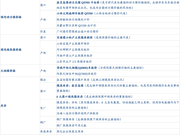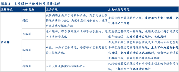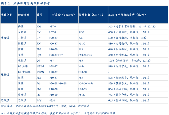 在煤炭行业及公司的分析中,我们主要根据煤炭用途将煤炭划分为动力煤、炼焦煤和无烟煤三种。在价格上,不同煤种主要关注不同指标: