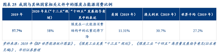 从能源的消费结构来看,煤炭在我国一次能源消费中的比重下降是长期趋势,但至少5年内煤炭在我国能源体系中的主体地位和压舱石作用不会改变。目前根据煤炭工业协会的数据,2019年煤炭占我国一次能源消费比重为57.7%,无论是相比欧美国家基本低于20%的能源消费比重,还是“十三五”规划以及“十四五”指导文件中的相关要求,未来炭占我国一次能源消费比重将继续下降。