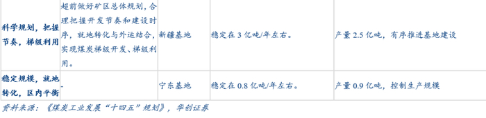 另外,《煤炭工业“十四五”高质量发展指导意见》文件中尤其值得关注的是对我国未来煤炭资源开发布局的描述,将其与“十三五”规划文件中的我国2016年至2020年煤炭资源开发布局对比可知,“十四五”期间,蒙东、鲁西、陕北、黄陇、新疆基地产量要求相比“十三五”规划中的2020年末产量有所上升,其中蒙东、陕北、黄陇基地将是我国未来提升煤炭产量的“主力军”,冀中、两淮、神东三基地产量要求保持不变,云贵、河南、晋北、晋中、晋东、宁东等基地则产量要求有所下降,其中河南地区和山西地区煤炭产量将有较为明显的下降。