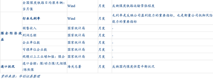 煤企经济效益状况:该部分指标主要包括国家统计局每月公布的煤炭企业单位,亏损单位占比和wind公布的煤炭行业毛利率等指标,分析煤企的经济效益状况可以判断当前煤炭行业的景气度和未来的行业集中度变化。