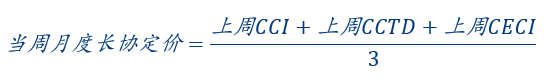月度长协定价:指双方按月为周期对煤炭进行约定交易的交易模式。定价周期大多为每月一次,但2020年9月29日,神华集团针对月度长协定价机制做了一定的调整,定价原则由原来的每月调整一次改为每周调整一次,每周三0:00至下周二24:00为一个周期,以上周二CCI、CCTD、CECI指数均价为当期价格。因此当前中国神华的月度长协定价公式为: