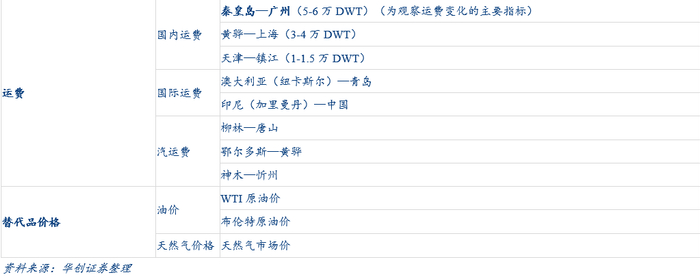 在跟踪煤炭行业最重要的指标——价格时,我们需对煤炭的种类、运输状态和省份进行区分。此外,也需关注其它会对煤炭价格产生重要影响的外部指标,例如库存、运费、国际煤炭价格、替代品价格(石油、天然气价格)等。